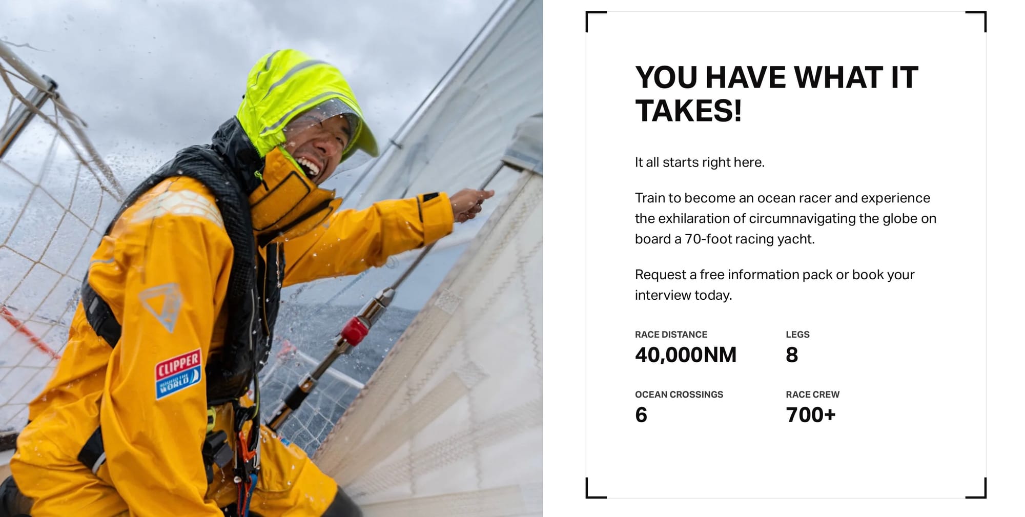 Soon after the first itch, my socials picked up on my interest for sailing and Instagram stories showed me some amazing videos about a fleet of 11 sailing yachts competing in a race around the world. And Clipper Ventures, the organisation behind the race, was recruiting people like you and me, with or without experience. Say no more!