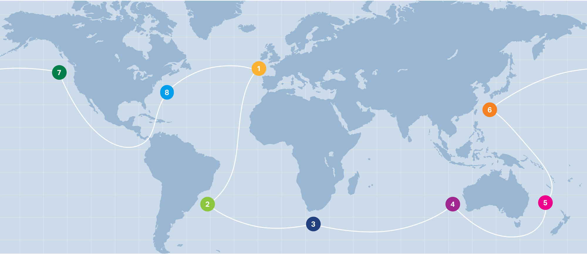 Luckily Kate has been massively supportive and together we started to look at a list of options. No ports were confirmed, but in rough lines the tour around the world would be divided into 8 Legs.